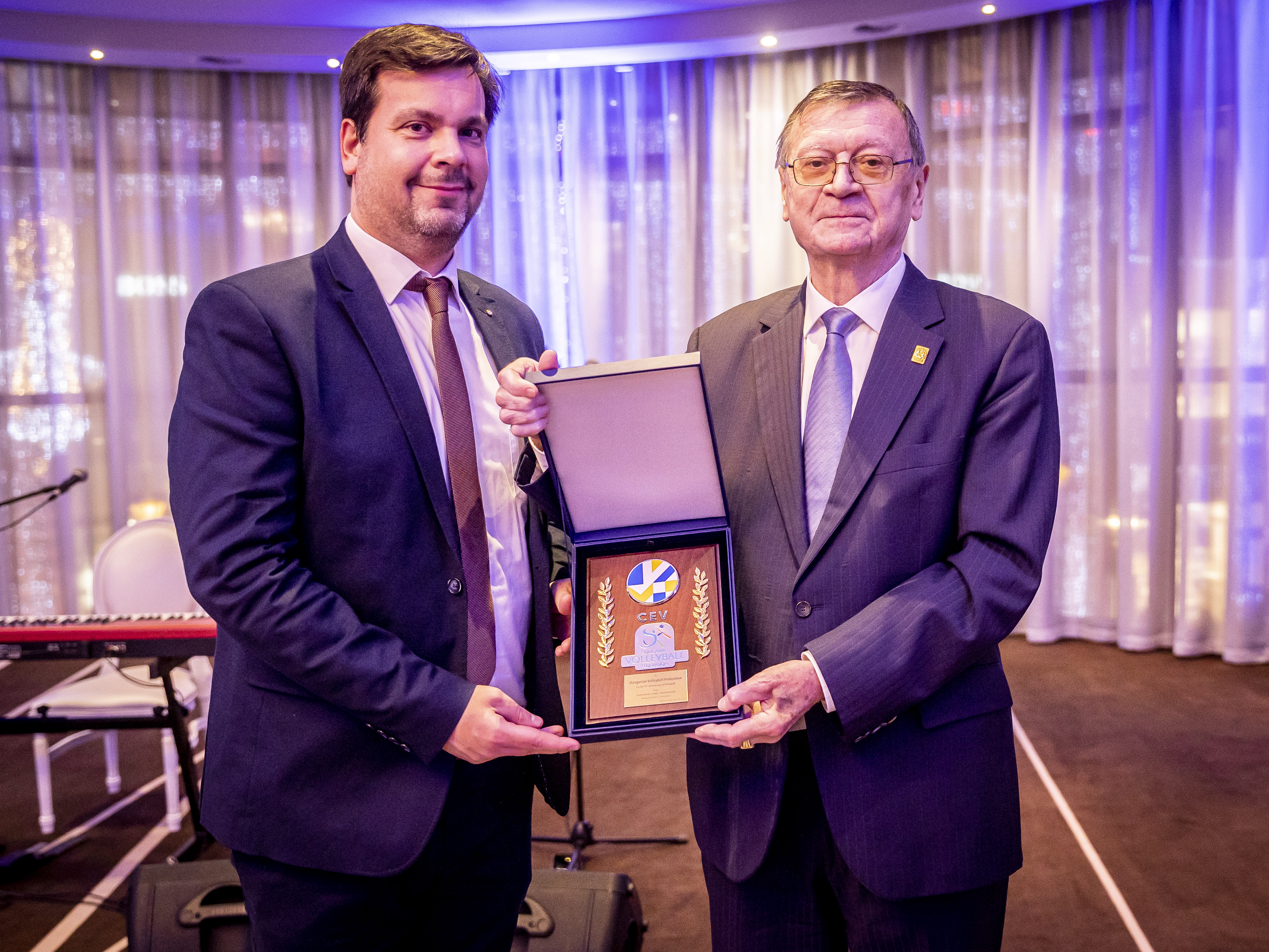 To cap a busy and very productive weekend spent in the capital city of Hungary, the members of the CEV Board of Administration attended on Sunday night a glittering gala dinner organised in Budapest to celebrate the 75th anniversary since the establishment of the Hungarian Volleyball Federation.